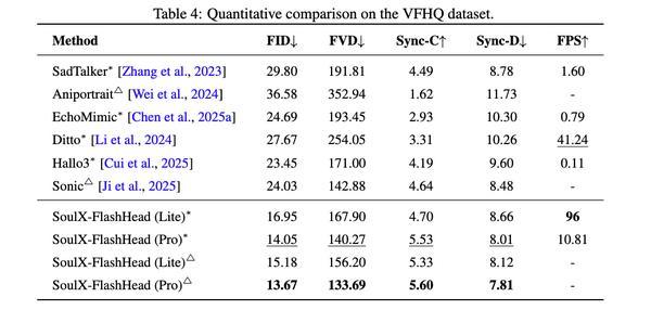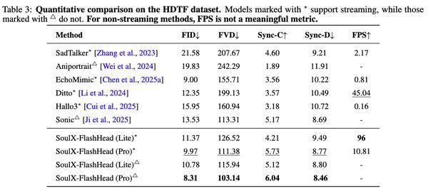 逛戏NPC引擎:1.3B 体积极易集成,处理了“小模子没好画质”的行业痛点。画质新标杆:正在高清视频(HDTF)评测中,以至跨越了更大参数量的模子,SoulX-FlashHead的价值正在于,